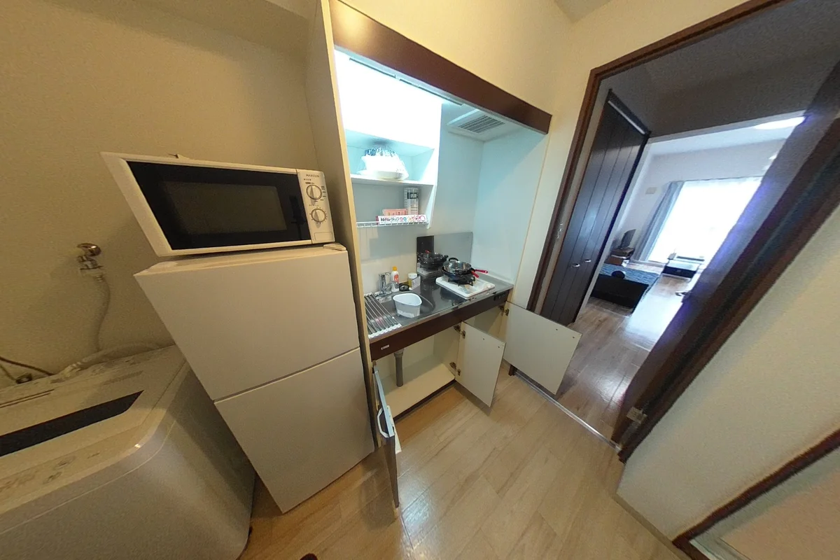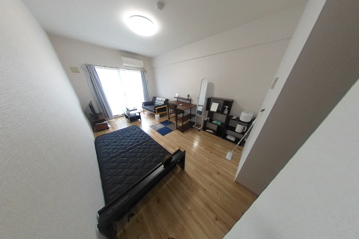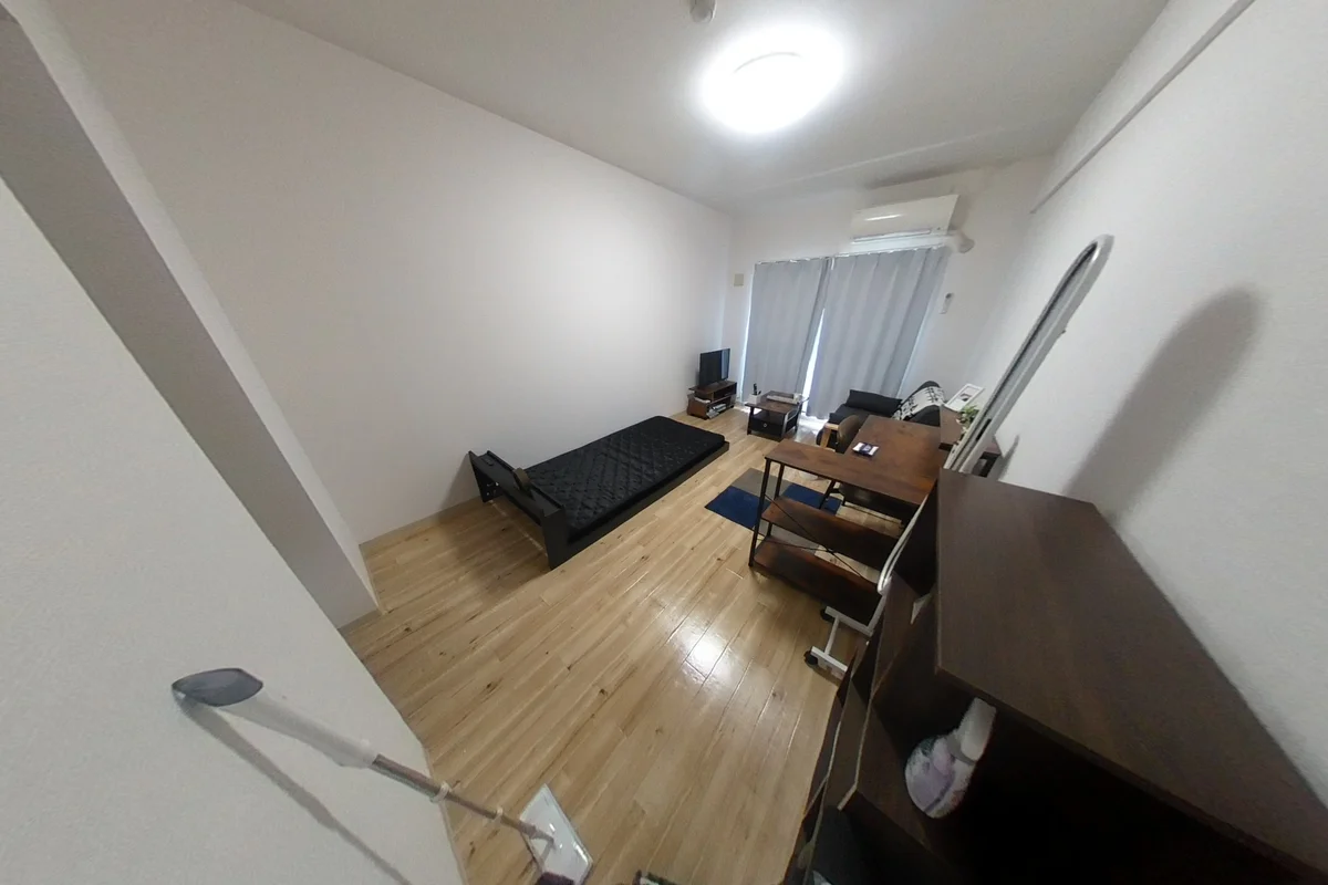 駐車場有り★2006年築の30㎡超(洋室9帖)のお部屋です。システムキッチン(3口コンロ)で自炊しやすい!デスクやソファ付きでゆったりとお過ごしいただけます。
