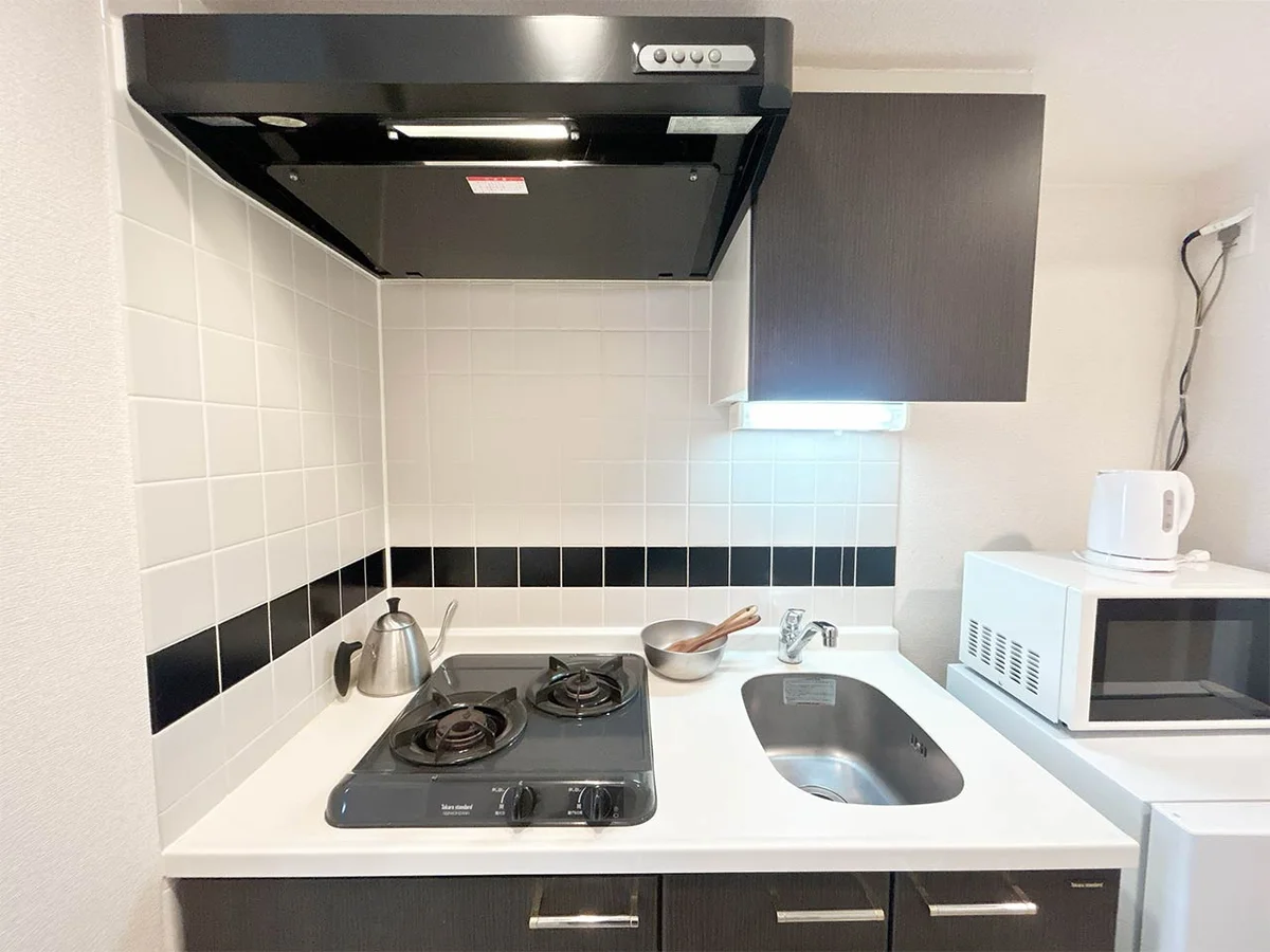 ▼洗面台独立、2口ガスキッチン付き