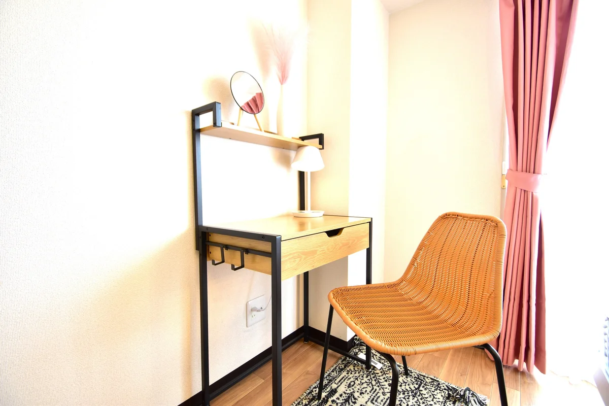 オートロック・駐車場対応可能な中区市役所徒歩1分のマンスリーです!室内にはダブルベッド×1・シングルベッド×2を備えたベッドルーム有り。・ダイニングテーブル・ワークデスク完備のお部屋です。