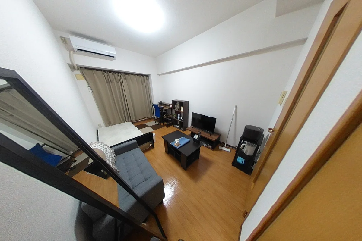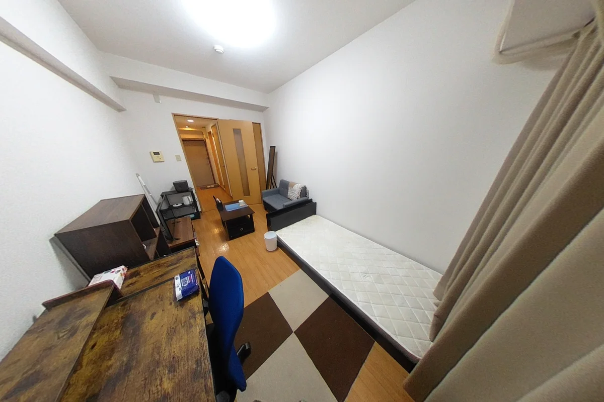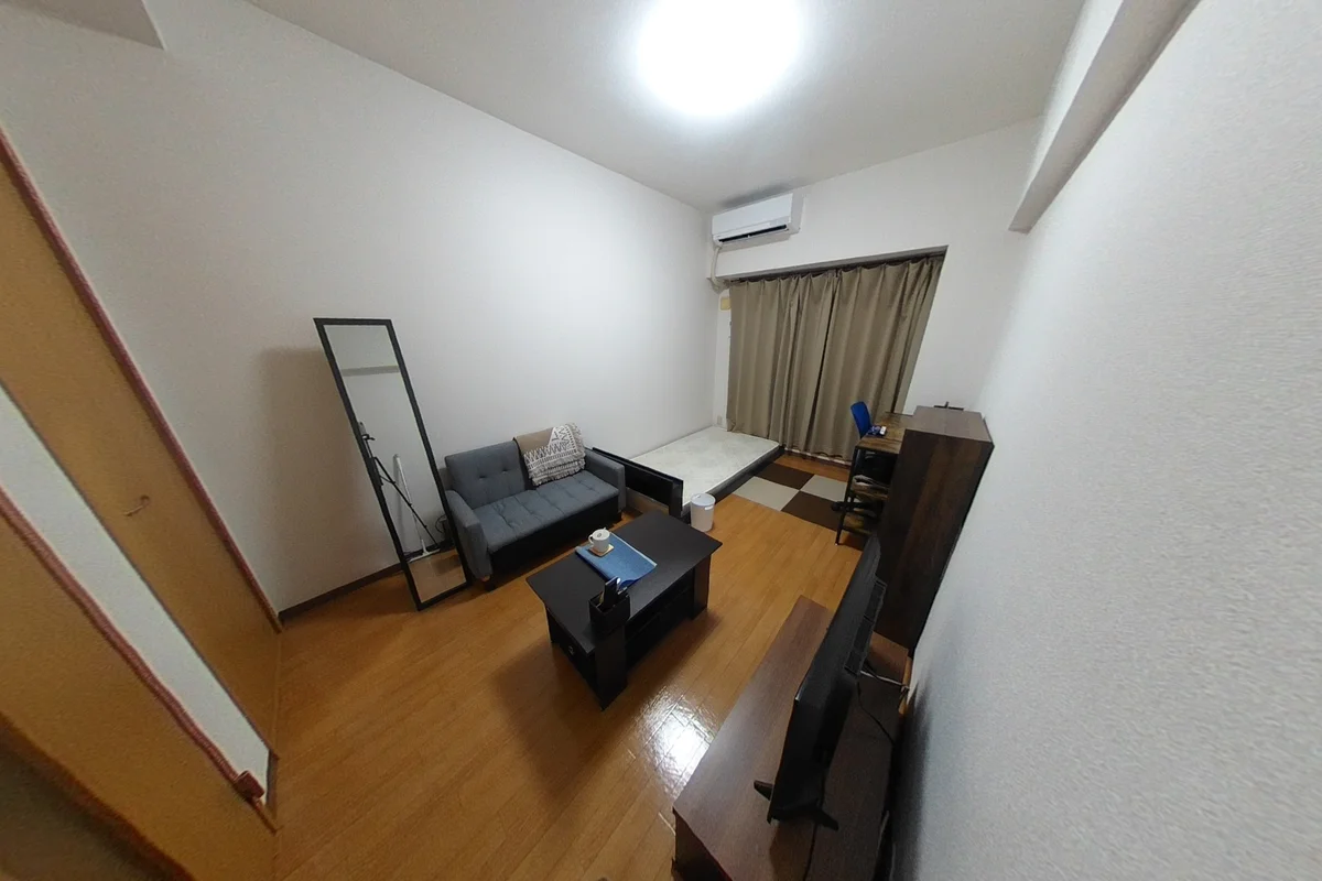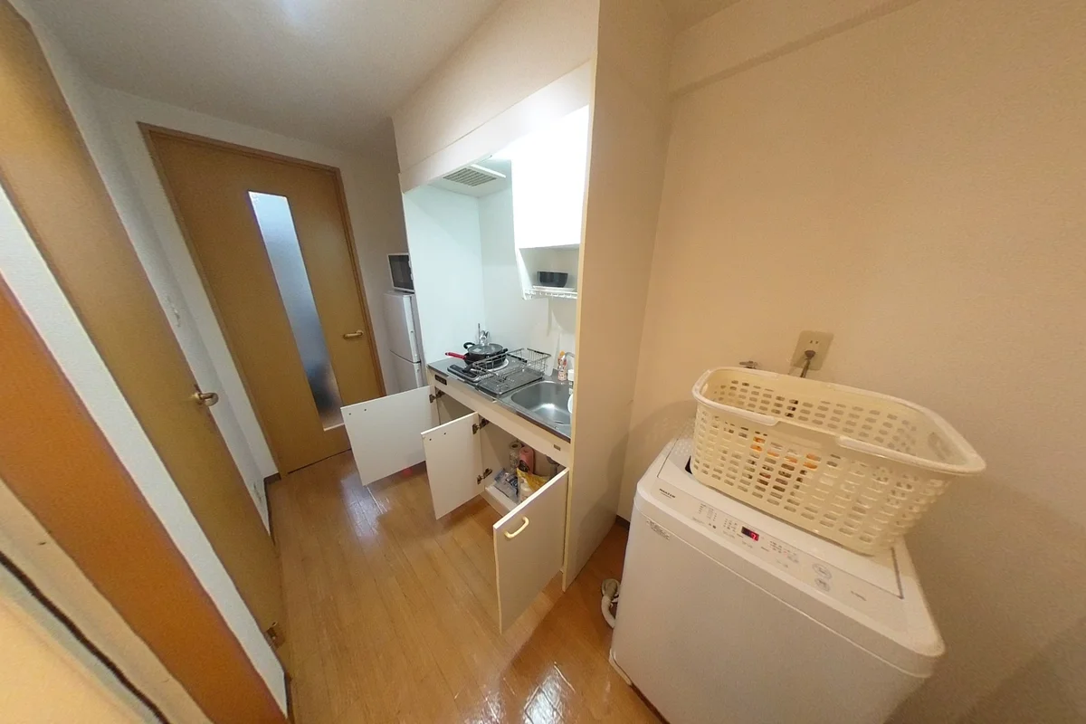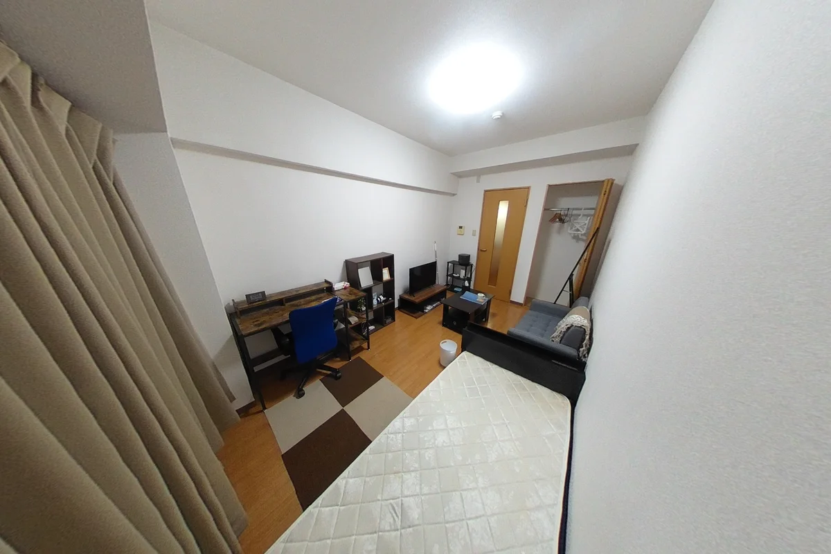 ・シングルベット、マットレス、フローリングワイパー、ソファ、デスク、チェアー、ローテーブル、電子レンジ、炊飯器(IH)、フライパン、鍋、電気ケトル、スタンドミラー、ドライヤー、DVDプレイヤー、シーリング照明、TV台、TV、洗濯機(5.0kg)、冷蔵庫(138L)、3段ラック