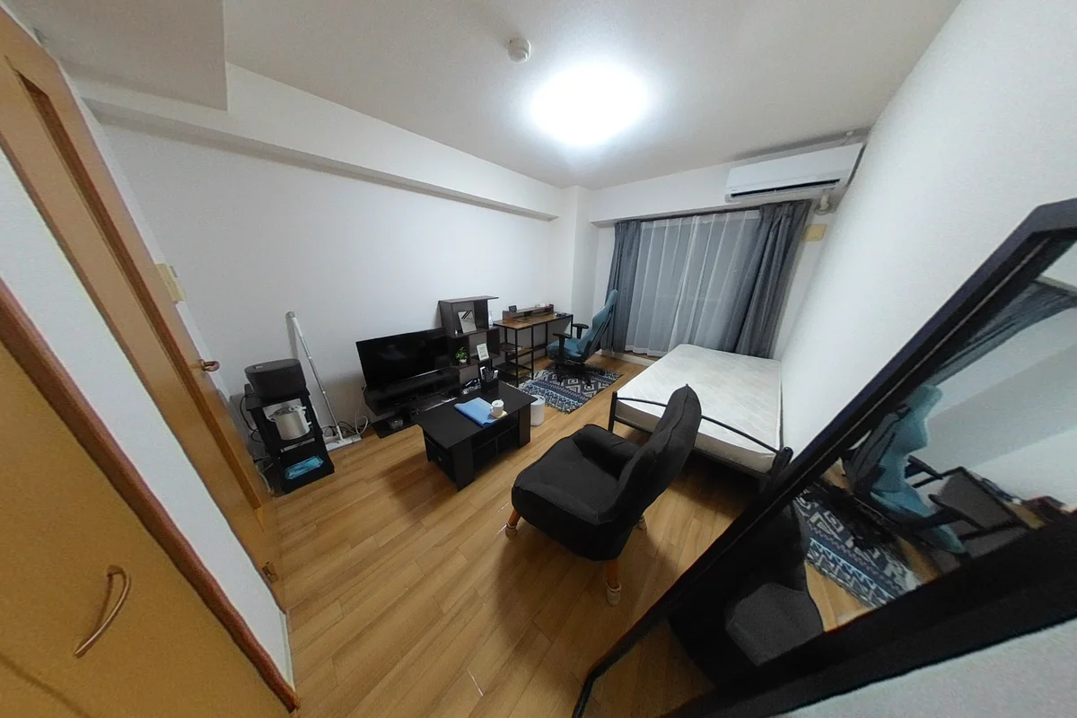 ・シングルベット、マットレス、フローリングワイパー、ソファ、デスク、チェアー、ローテーブル、電子レンジ、炊飯器(IH)、フライパン、鍋、電気ケトル、スタンドミラー、ドライヤー、DVDプレイヤー、シーリング照明、TV台、TV、洗濯機(5.0kg)、冷蔵庫(138L)、リビングラック、3段ラック、リビングラック