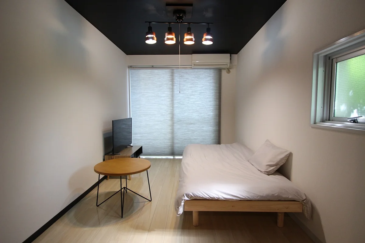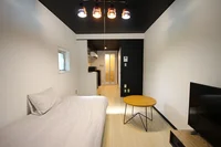 黒天井とスポットライトが印象的な、シックでおしゃれなワンルーム。