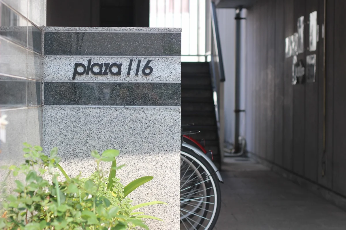 建物入口には緑と雑貨屋さんがあり、小さなおしゃれを感じられるPlaza116。