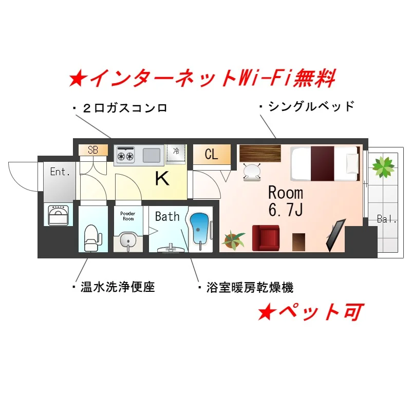 - ネット環境 あり無料 (Wi-Fiあり)