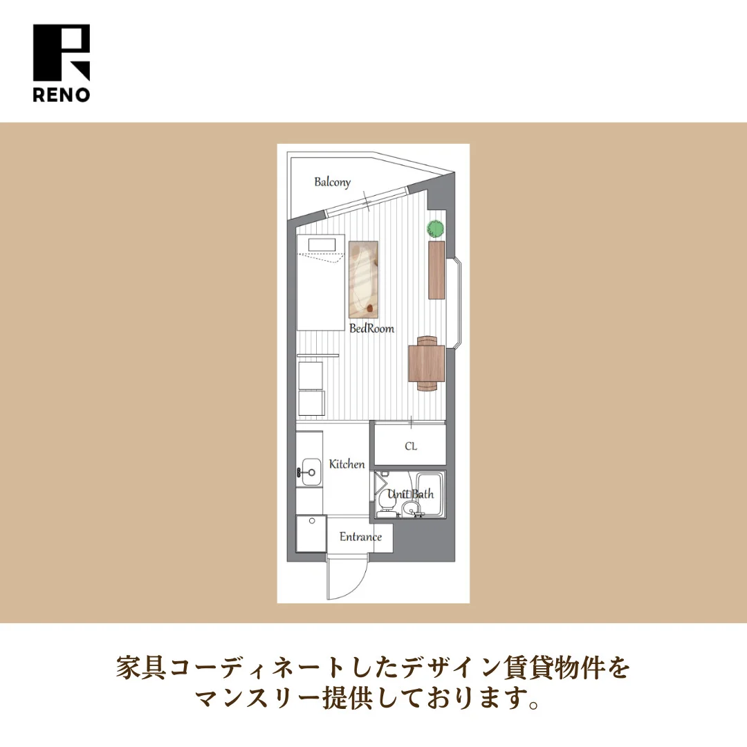 - 【家具コーディネート物件】駅から徒歩圏内のRENOマンスリーがOPENしました!
