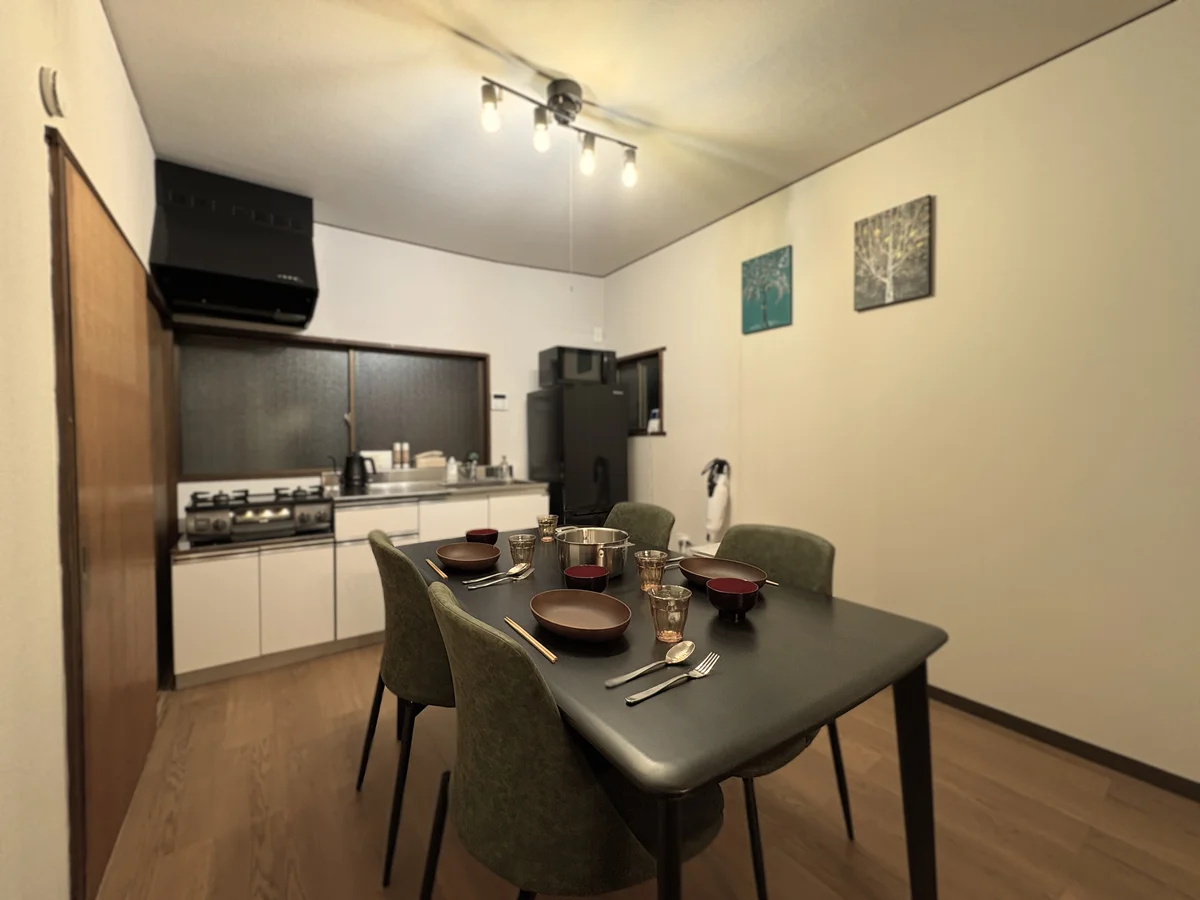 79.4㎡の広々4LDK戸建てを、フルリフォーム済み&家具家電付きでご用意しました。最大6名まで宿泊でき、家族や友人同士での滞在、長期のテレワークにもぴったり。Wi-Fi・エアコン完備で快適に過ごせます。保証人不要で手続きもスムーズ、近隣には駐車場もあり。