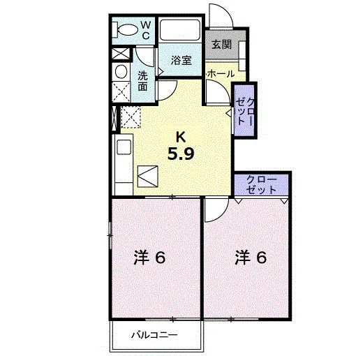 | 間取り | 2K | 面積 | 42.77m² |