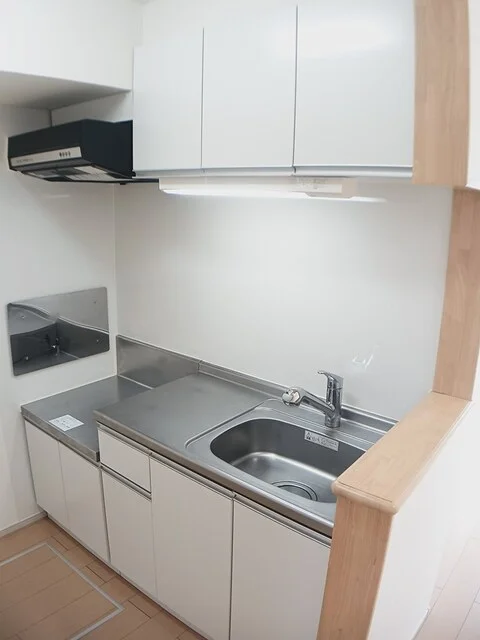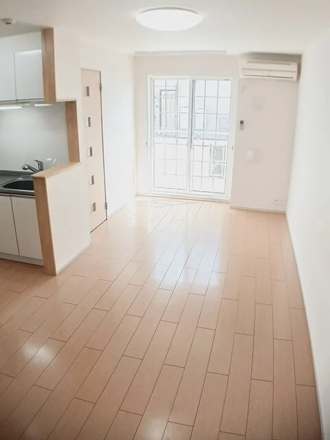 開放感のあるリビングと機能的なキッチンを備えた快適1LDK。使いやすいシステムキッチン付きで、快適なマンスリー滞在を実現します。
