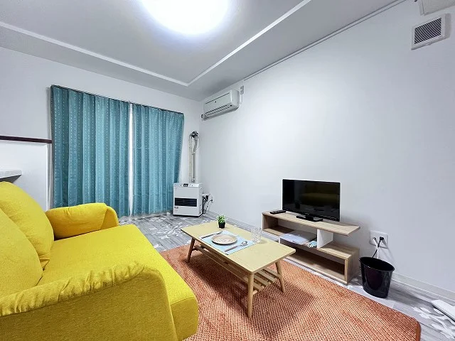 ・家具(シングルベッド・ソファー・テーブル・テレビ台・カーテン)