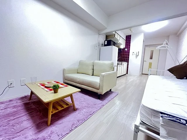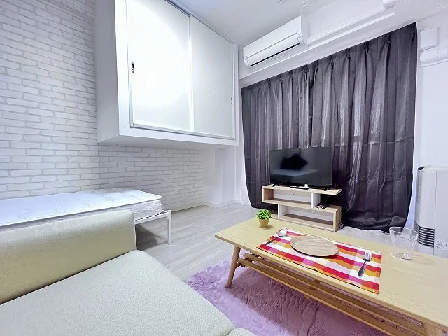 ・家具(シングルベッド・ソファー・テーブル・テレビ台・カーテン)※物件によって内容は多少異なります。