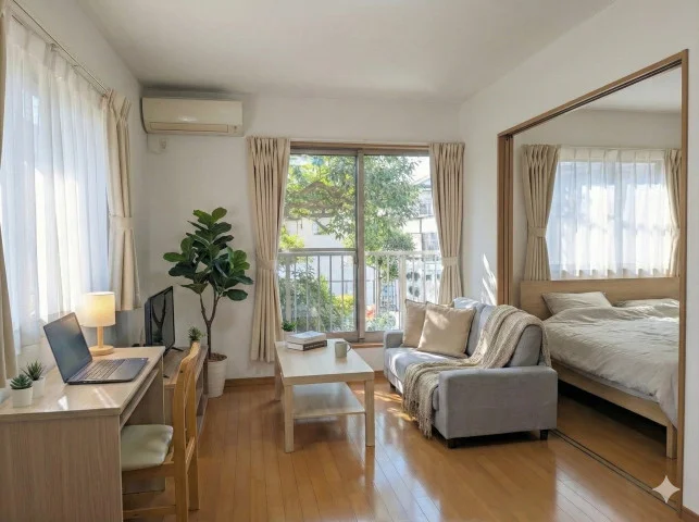 裾野駅徒歩10分で通勤・通学・出張に便利。家具家電付き1DK、Wi-Fi無料、駐車場完備で単身滞在におすすめです。