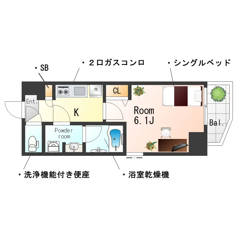 | 間取り | 1K | 面積 | 20.44m² |