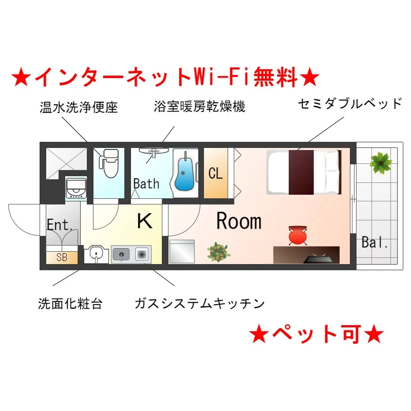 - ネット環境 あり無料 (Wi-Fiあり)
