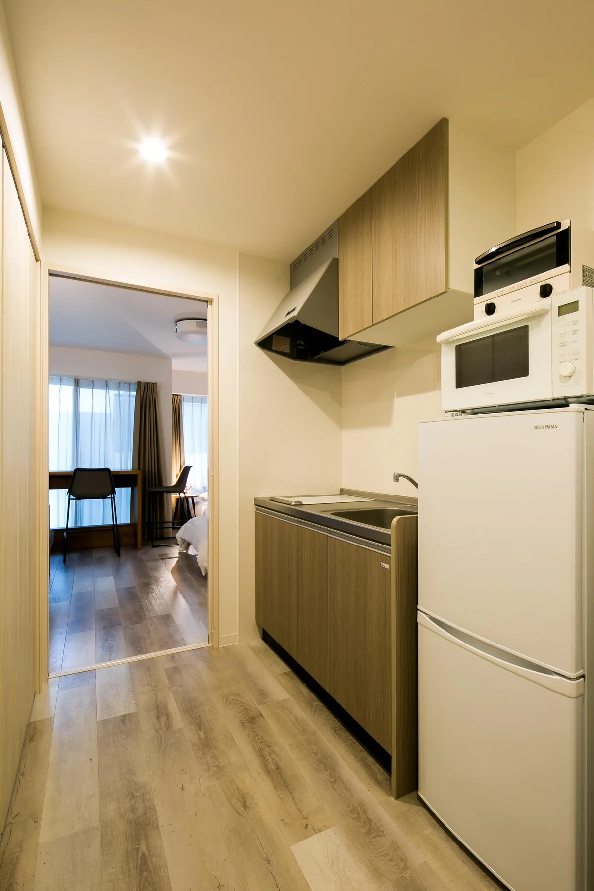 室内にはエアコン、Wi-Fi、キッチン、調理器具・食器類一式、洗濯機、ドライヤー、バスタオル、歯ブラシ、シャンプー・コンディショナー・ボディーソープなど、生活に必要な設備・アメニティを完備。チェックイン当日から、スーツケースひとつでそのまま日常のようにお過ごしいただけます。
