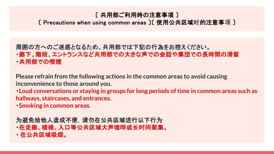 | お部屋に関するご案内事項 | |||