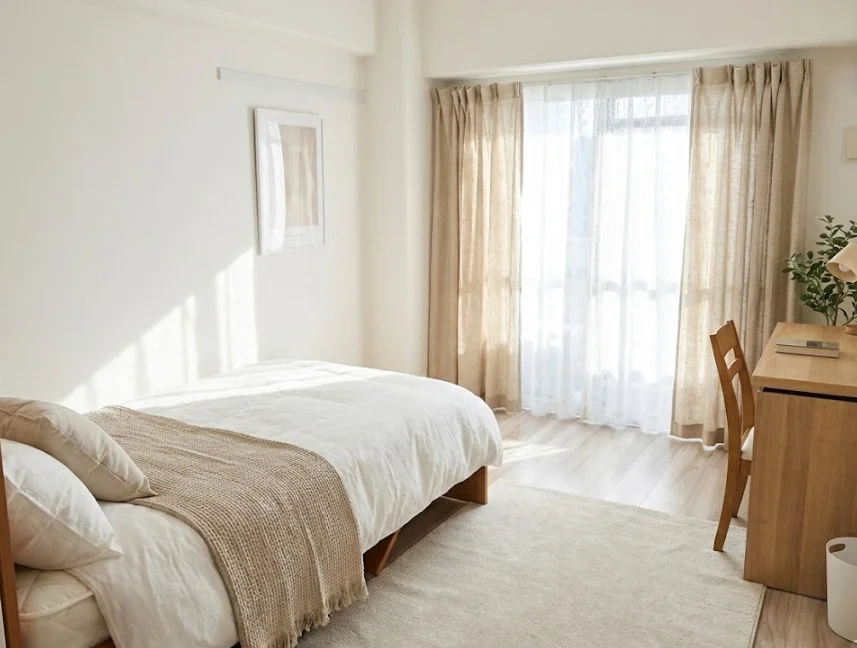 ・家具(シングルベッド・デスク・椅子・カーテン)