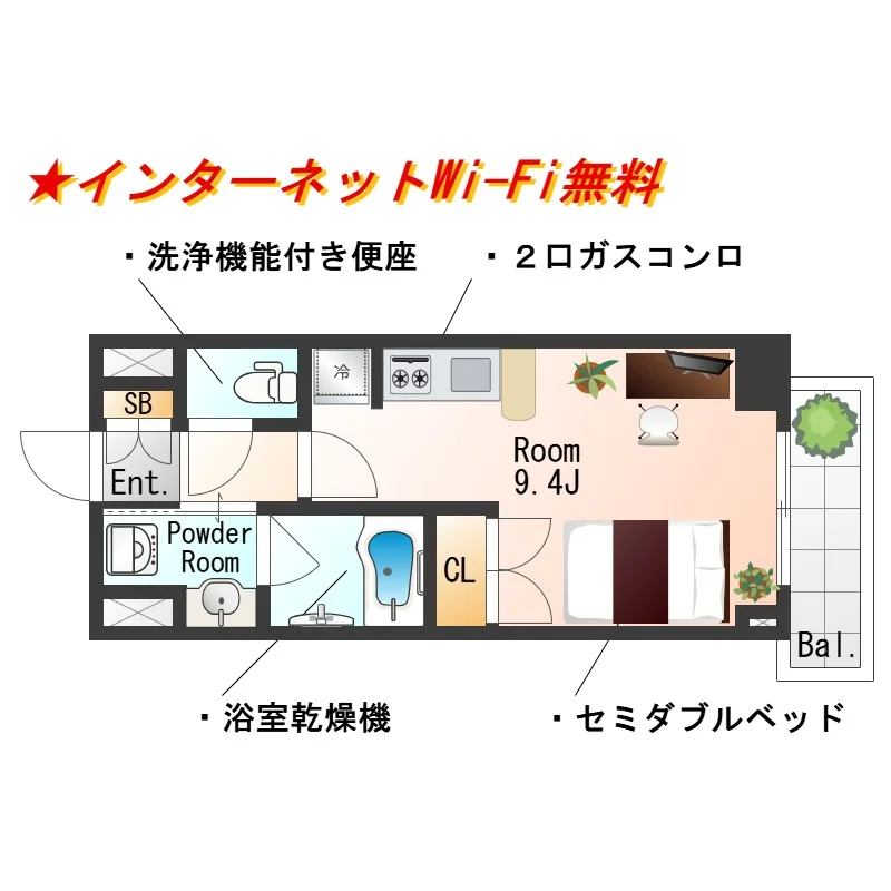 - ネット環境 あり無料 (Wi-Fiあり)