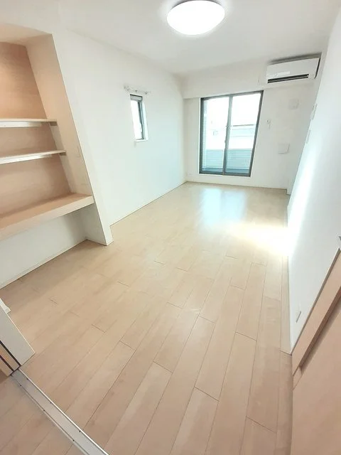 開放感のあるリビングと機能的なキッチンを備えた快適1LDK。使いやすいシステムキッチン付きで、快適なマンスリー滞在を実現します。