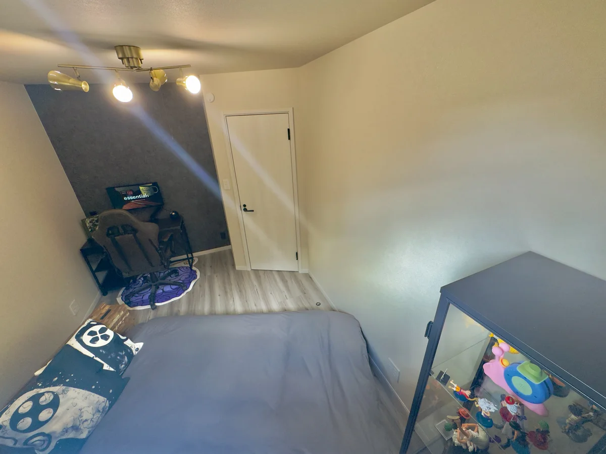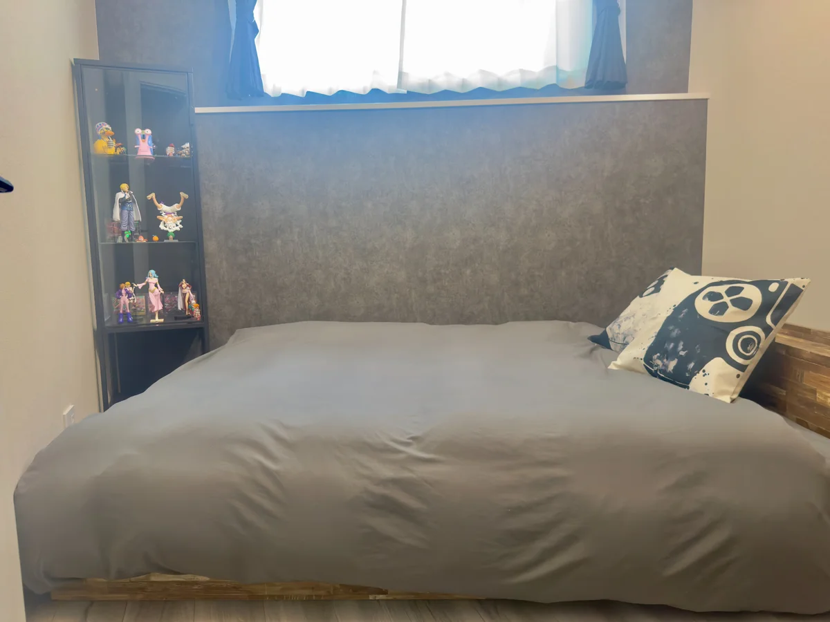 4LDKの1部屋(洋室5畳)がプライベートスペースです。ダブルベット,デスク,椅子があります。