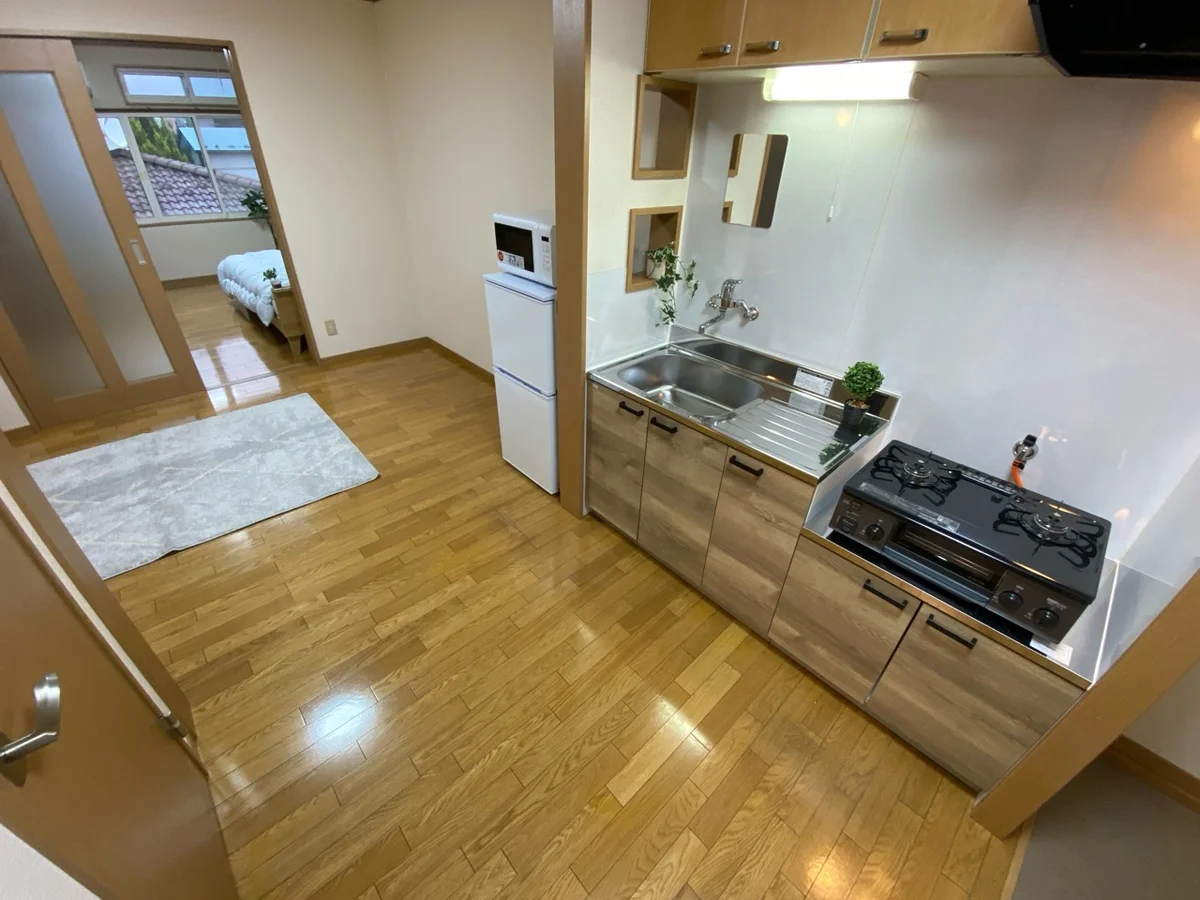 【インターネット無料・駐車場有】東大館駅から徒歩圏内で車移動や複数名利用も可能なバストイレ別・独立洗面台付で対面キッチン仕様