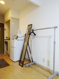 備品、消耗品 ゴミ箱、ティッシュ、鏡、雑巾、室内物干し