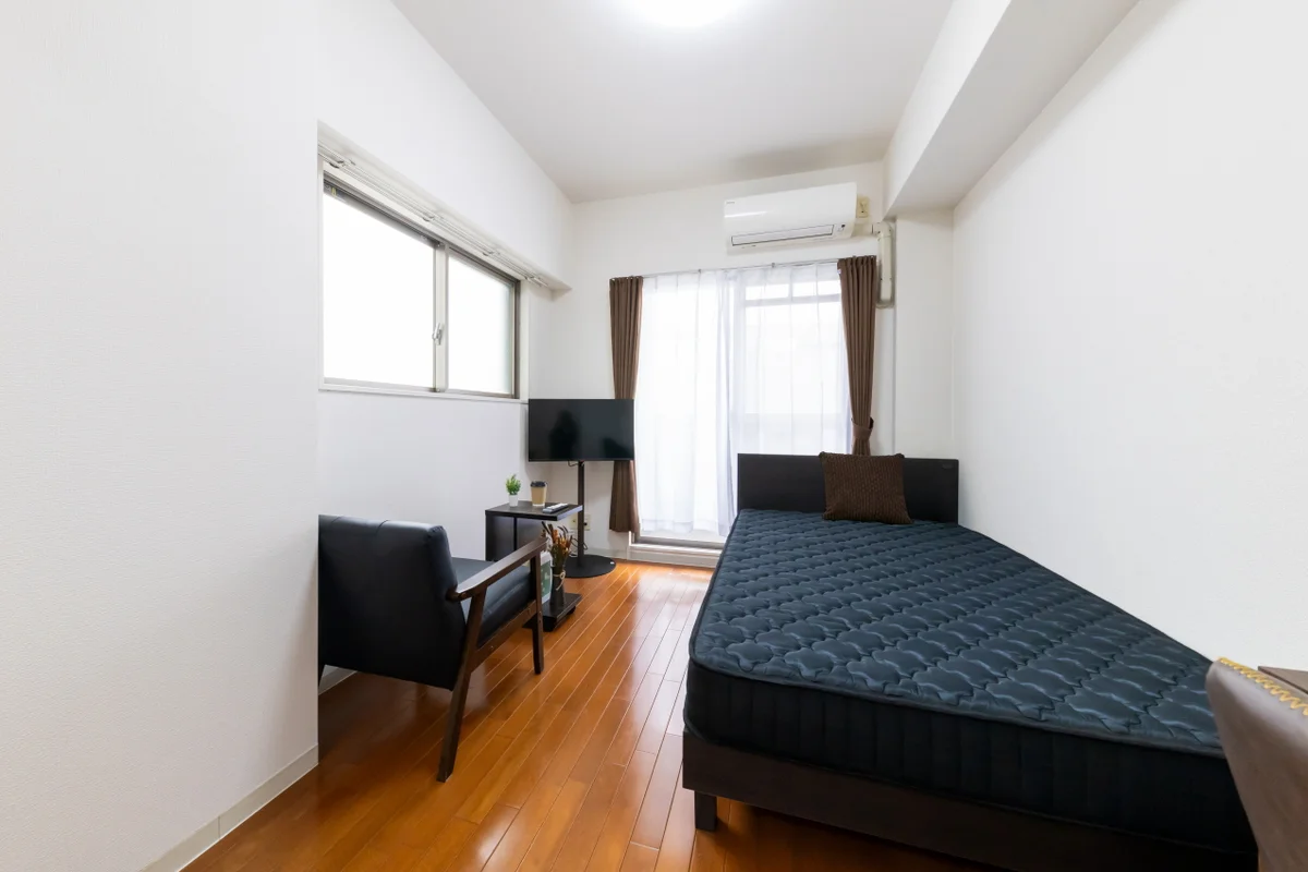 【禁煙ルーム・1DK・セミダブルベッド】★インターネットWi- Fiレンタル可★独立洗面台・ガスキッチン・オートロック★分譲マンション★
