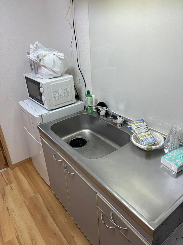 ★キッチン用品(フライパン、鍋など)、食器類(紙皿等)はオプション設置になります。新品販売です(キッチンセット9,900円(税込))。お問い合わせください。