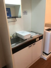 ★キッチン用品(フライパン、鍋など)、食器類(紙皿等)はオプション設置になります。新品販売です(キッチンセット9,900円(税込))。お問い合わせください。