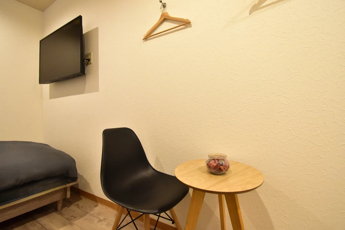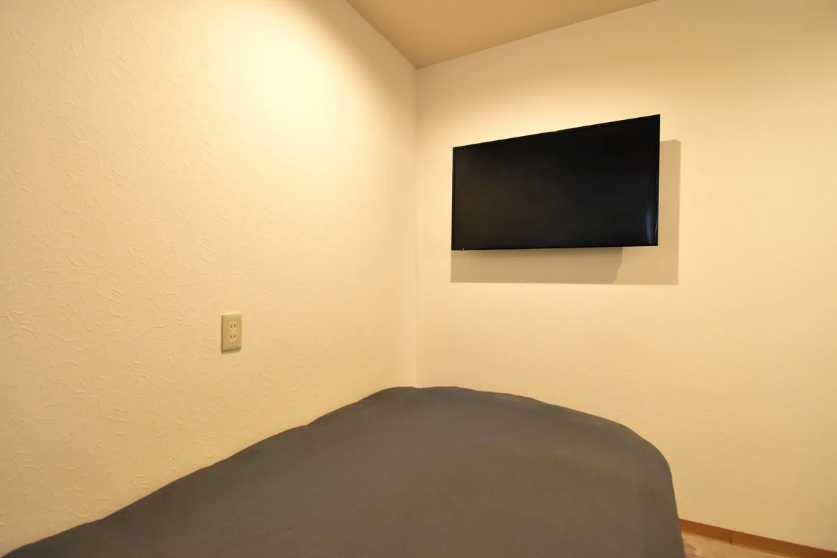 シンプルなお部屋に壁掛けTV・空気清浄機付き。