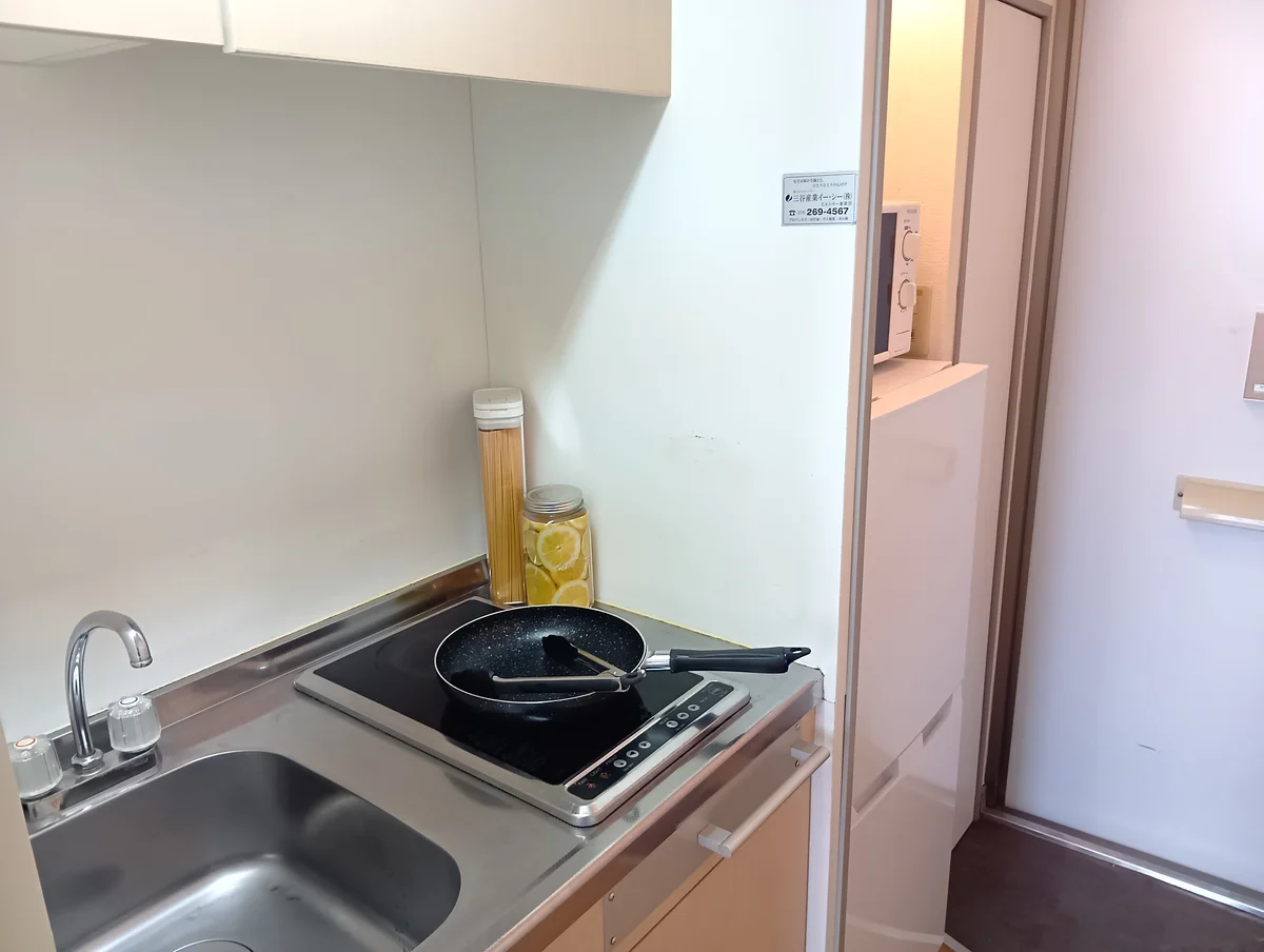 IHクッキングヒーター付きで自炊もラクラク。バストイレ別で水回りも快適です。