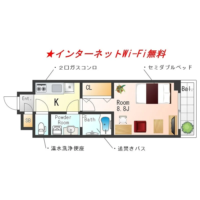 - ネット環境 あり無料 (Wi-Fiあり)