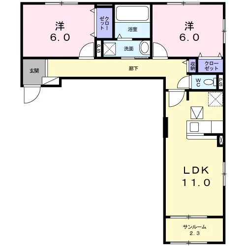 | 間取り | 2LDK | 面積 | 61.82m² |