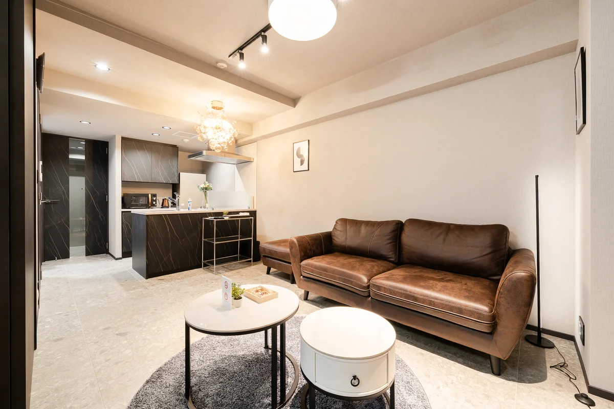 カウンターキッチンのリビングで広々2LDK物件です。ご家族での入居や期間中の入れ替えもご相談可能です。