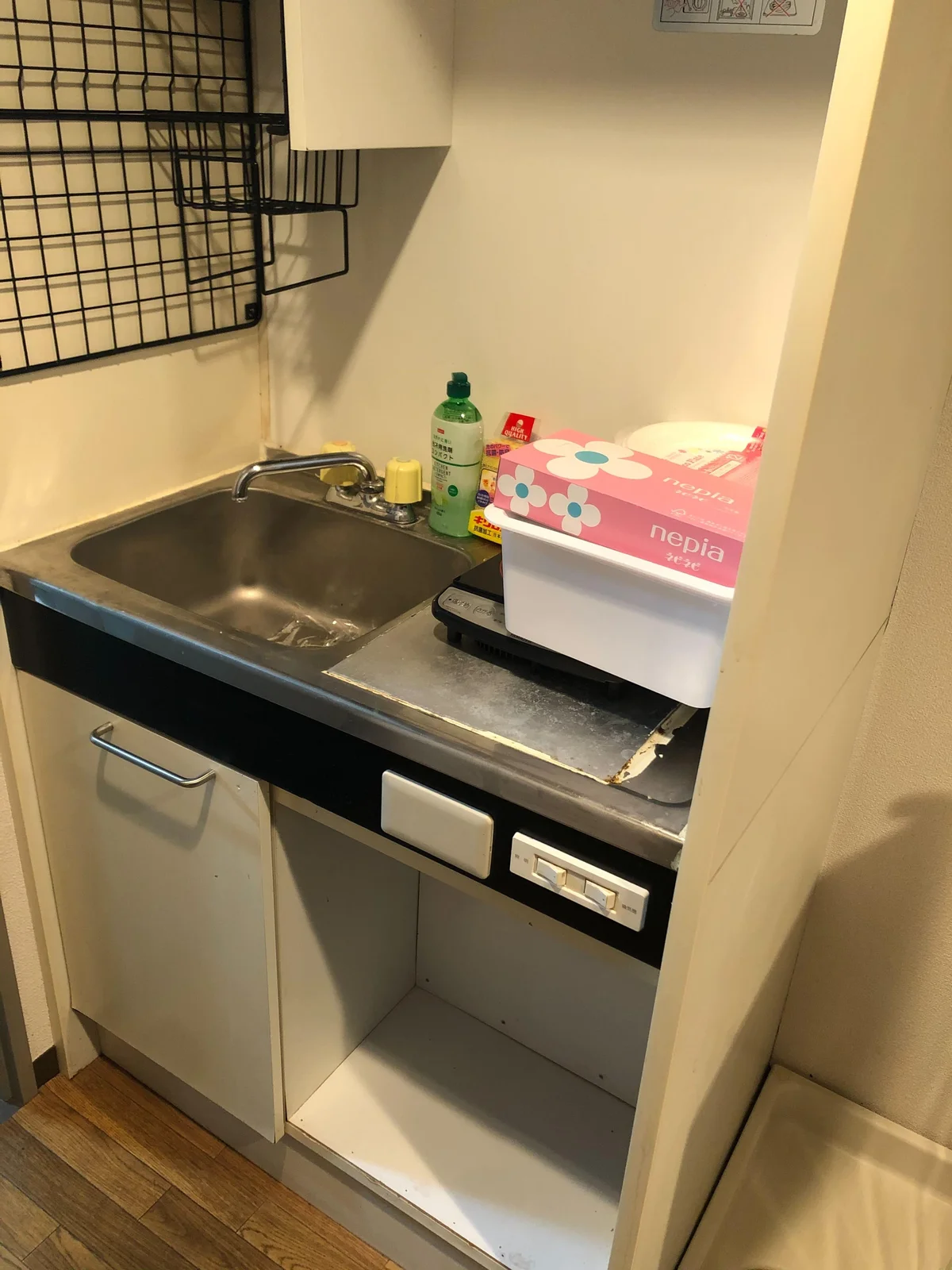 ★キッチン用品(フライパン、鍋など)、食器類(紙皿等)はオプション設置になります。新品販売です(キッチンセット9,900円(税込))。お問い合わせください。