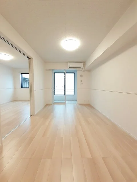 開放感のあるリビングと機能的なキッチンを備えた快適1LDK。使いやすいシステムキッチン付きで、快適なマンスリー滞在を実現します。