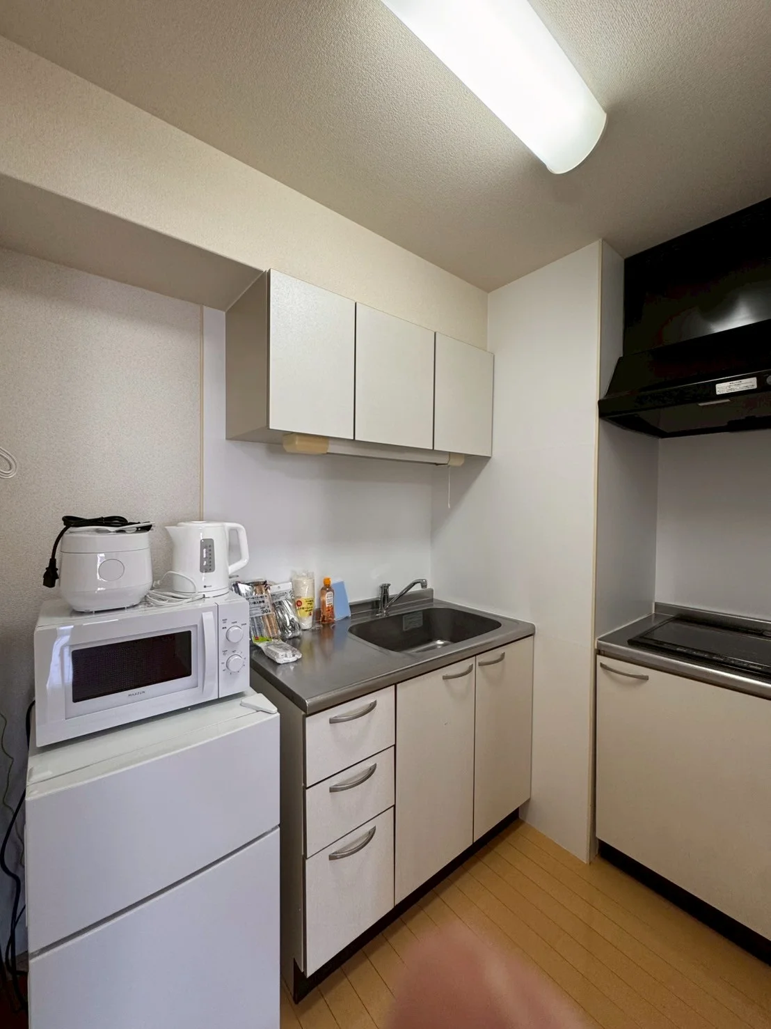 ★キッチン用品(フライパン、鍋など)、食器類はオプション設置になります。新品販売です(キッチンセット9,900円(税込))。お問い合わせください。