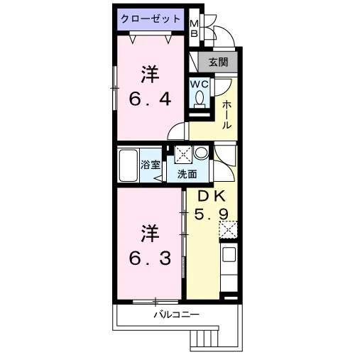 | 間取り | 2DK | 面積 | 45m² |
