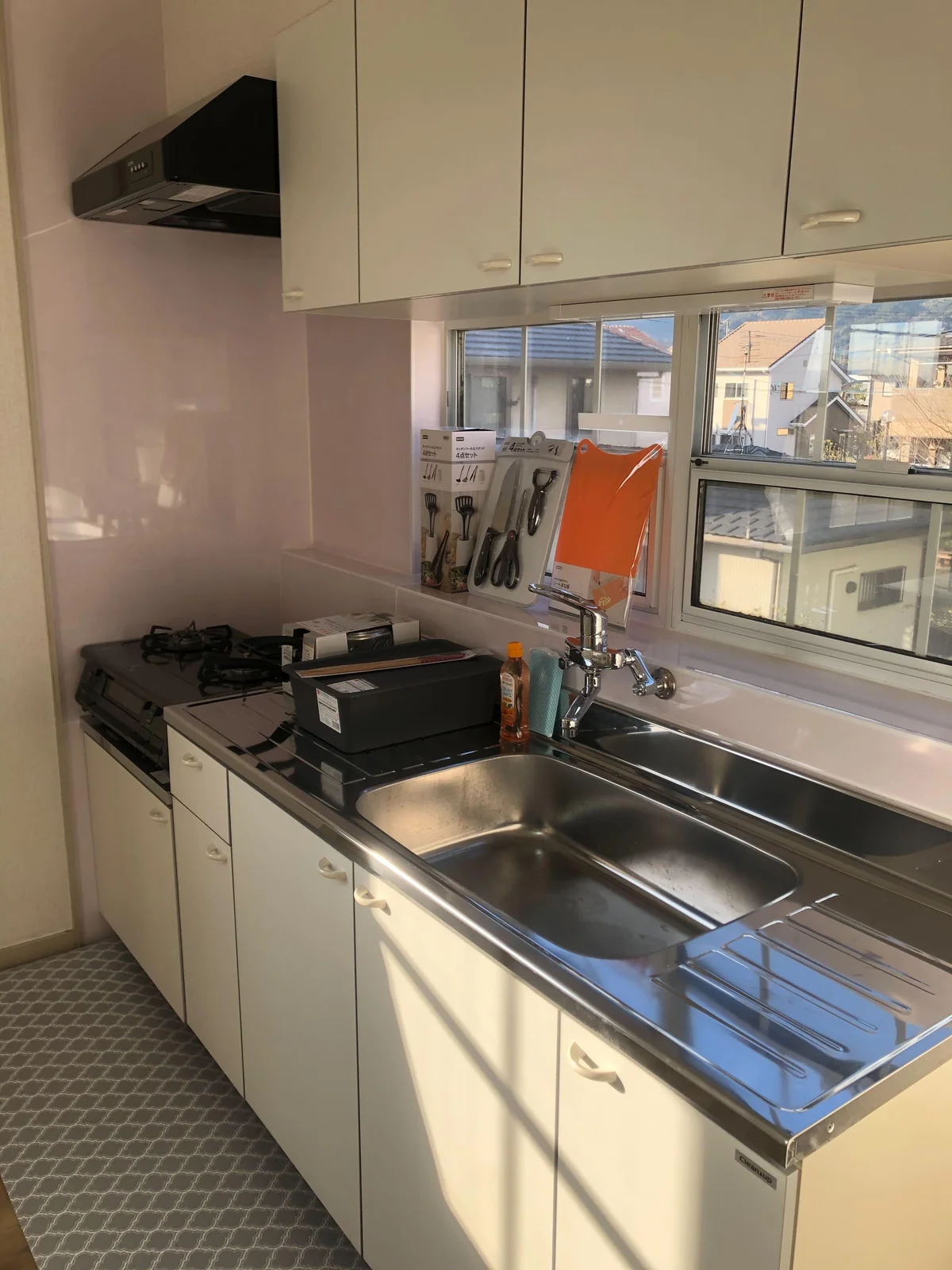 ★キッチン用品(フライパン、鍋など)、食器類(紙皿等)はオプション設置になります。新品販売です(キッチンセット9,900円)。お問い合わせください。