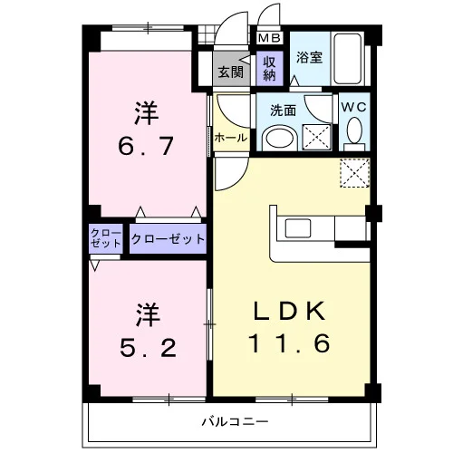 | 間取り | 2LDK | 面積 | 51.26m² |