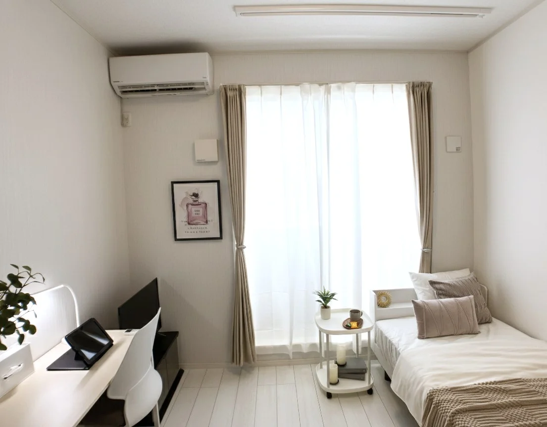 【駐車場完備・オール電化】群馬前橋駅まで徒歩5分 ウィークリーマンションで8.8帖あるので広々★人気物件♪家具家電完備★7日以上~利用可、群馬前橋駅前マンスリーマンション【対面契約不要】