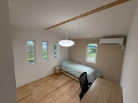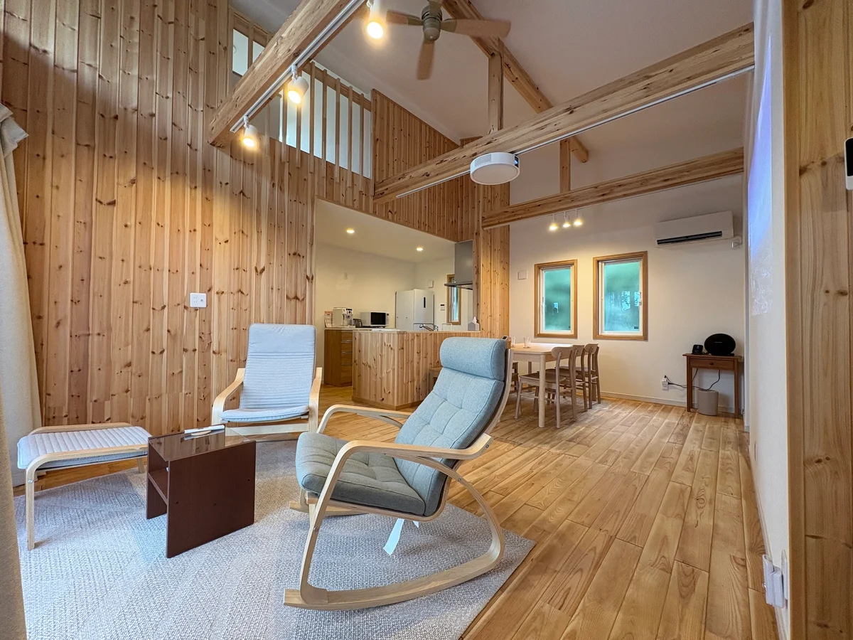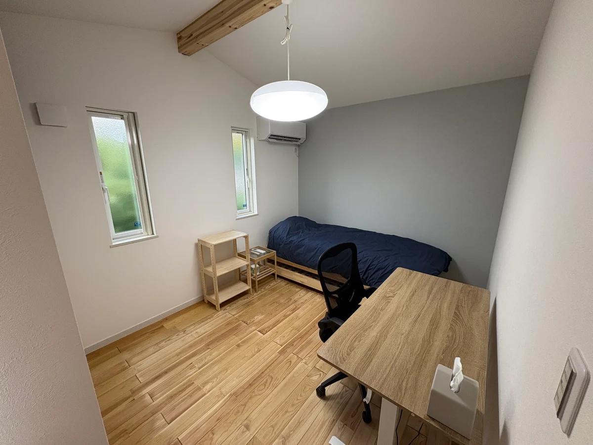 主寝室、広々とした LDK、⽔回りなど⽣活の主要スペースは 1 階に配置されており、平屋として快適に暮らせます。⼀⽅で、2 階には独⽴した洋室を 2室設置。リモートワークのための仕事部屋やゲストルームとして活⽤でき、プライバシーを保ちながら多⽤途に使えます。