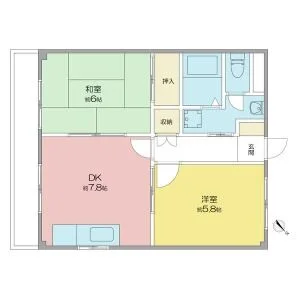 | 間取り | 2DK 洋室5.8帖、和室6畳、DK7.8帖 | 面積 | 44.88m² |