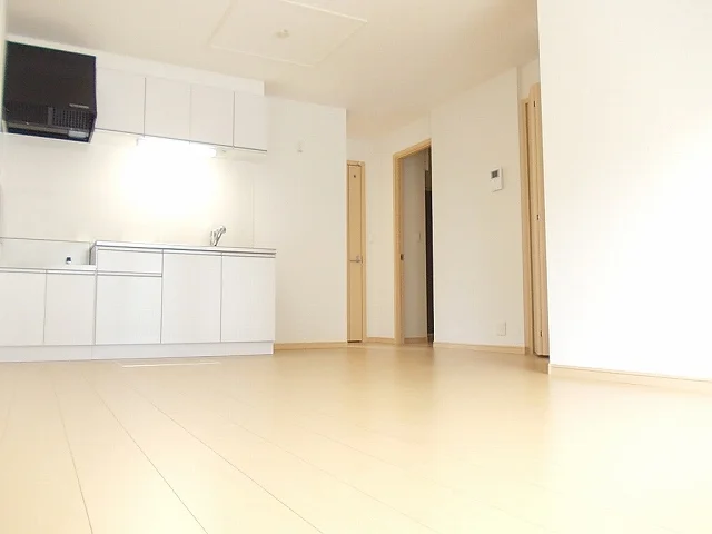 開放感のあるリビングと機能的なキッチンを備えた快適1LDK。使いやすいシステムキッチン付きで、快適なマンスリー滞在を実現します。