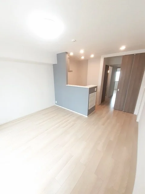 開放感のあるリビングと機能的なキッチンを備えた快適1LDK。使いやすいシステムキッチン付きで、快適なマンスリー滞在を実現します。