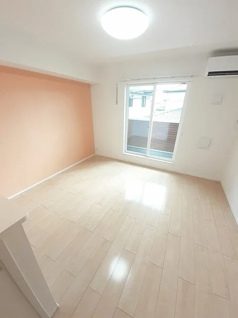 開放感のあるリビングと機能的なキッチンを備えた快適1LDK。使いやすいシステムキッチン付きで、快適なマンスリー滞在を実現します。
