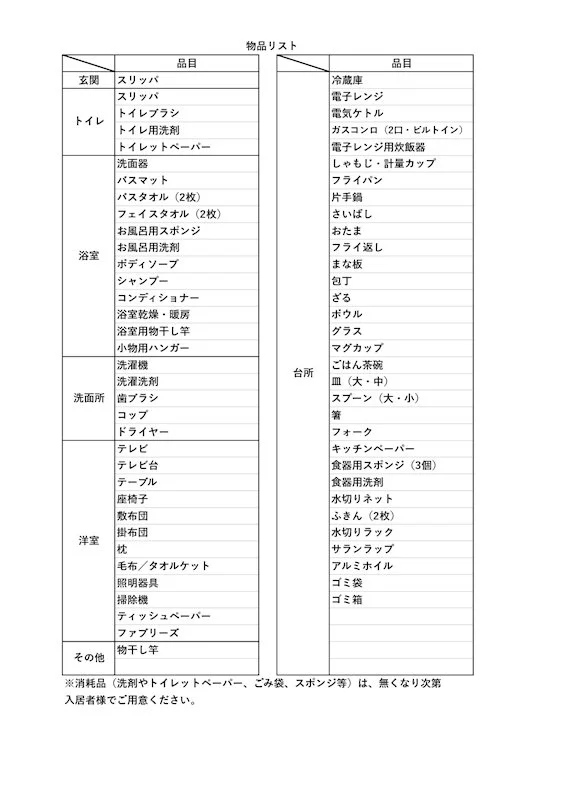 - 家具付賃貸