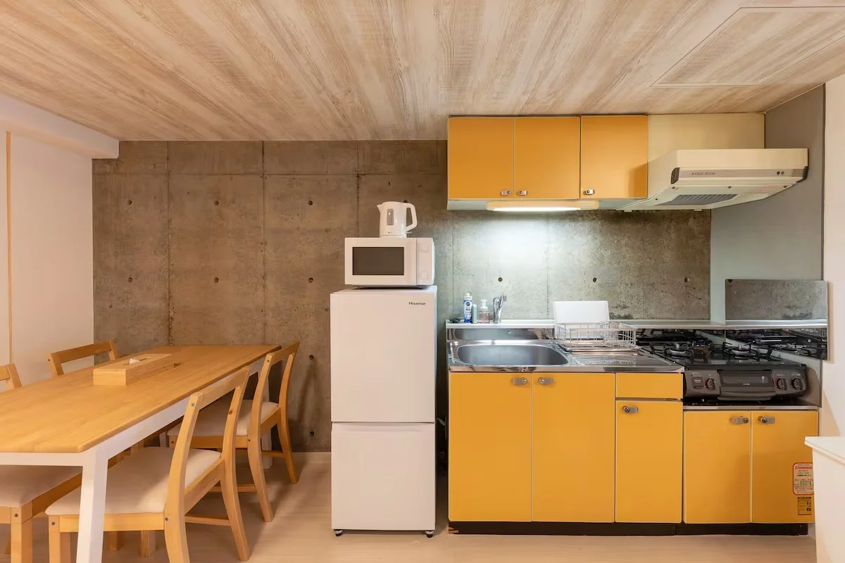 室内には基本的な調理器具・食器・カトラリーを揃えたキッチンを完備し、無料Wi-Fiもご利用いただけます。ティッシュ、トイレットペーパー、洗剤などの生活必需品もご用意しております。