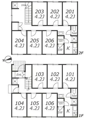 その他建物設備:シャワーブース、洗面用具入れボックス、共用トイレ、個別ポスト