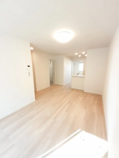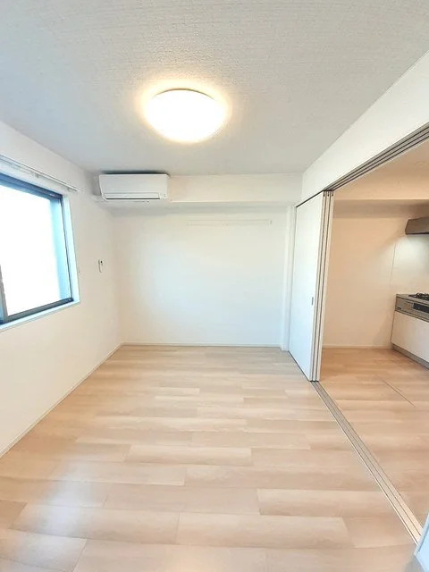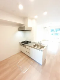 開放感のあるリビングと機能的なキッチンを備えた快適1LDK。使いやすいシステムキッチン付きで、快適なマンスリー滞在を実現します。