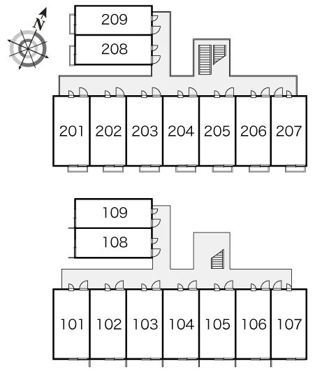1Fはフローリング仕様・2Fは絨毯仕様※号室によりタイプ相違